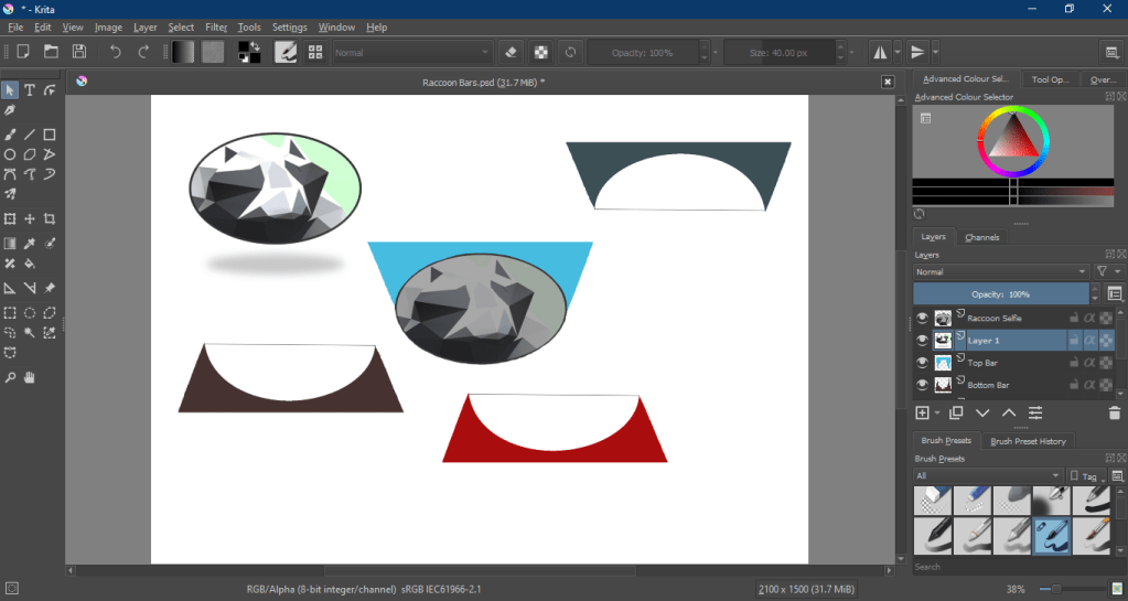 After I finished, I had more work to do, I had to create the empty versions of them all, So the versions that would indicate loss of Health, Stamina or the inability to use the Growl, So I had to darken and slightly fade the colours of the Stamina Bars and I had to change the Raccoon Face to a grey image, which is basically the same as Darkening and Fading but with the addition of subtraction of colour.