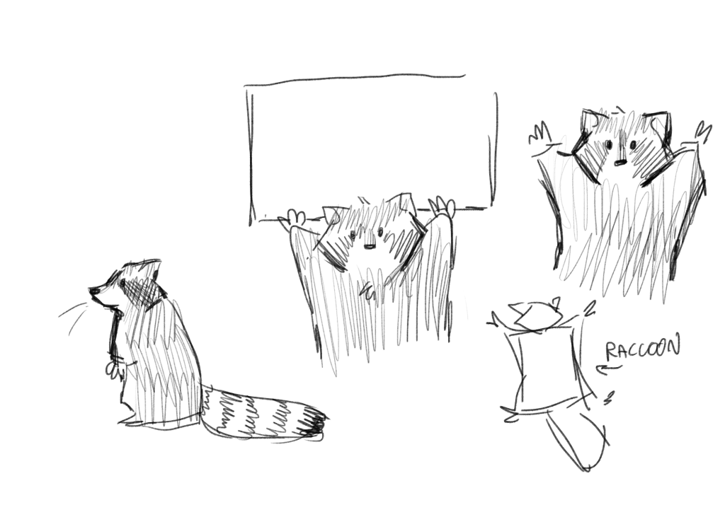 Pick-up items are another addition to the game – using the mouse, the player can click on pick-up items, which the racoon will then hold in their mouth. Upon letting go of the mouse, the racoon will drop the item. As such, they can only carry one food item at a time